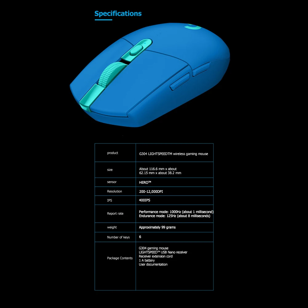 Беспроводная игровая мышь Logitech G304 LIGHTSPEED, перезаряжаемая, 5 передач, 12000 DPI, регулируемая, 6 программируемых кнопок, оптическая мышь