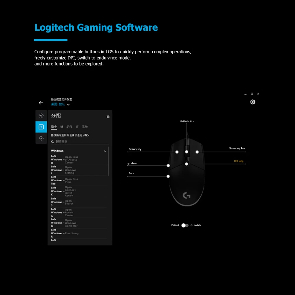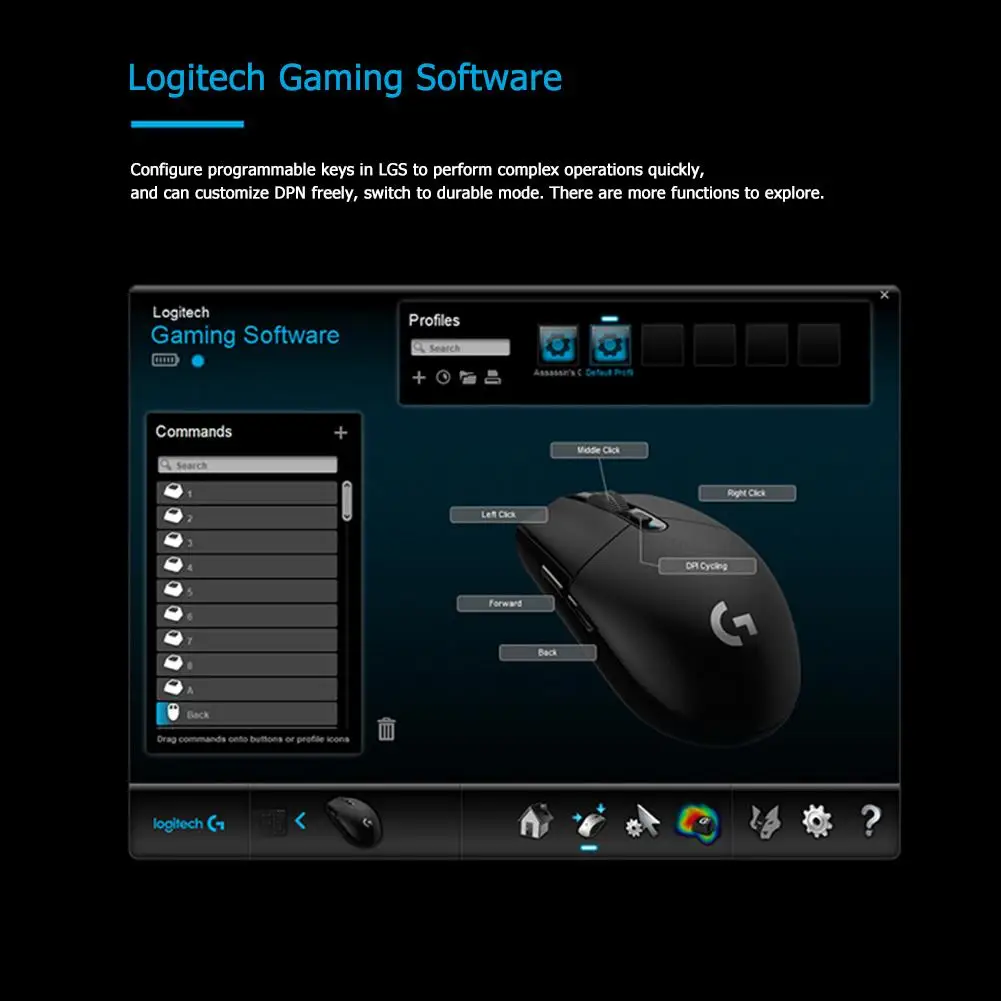 Основные переключатели G304, как левый, так и правый, рассчитаны на 10 миллионов кликов. G304 также имеет средний клик, кнопку DPI и две боковые кнопки, которые могут быть запрограммированы на ваши предпочтения с помощью Logitech G HUB.