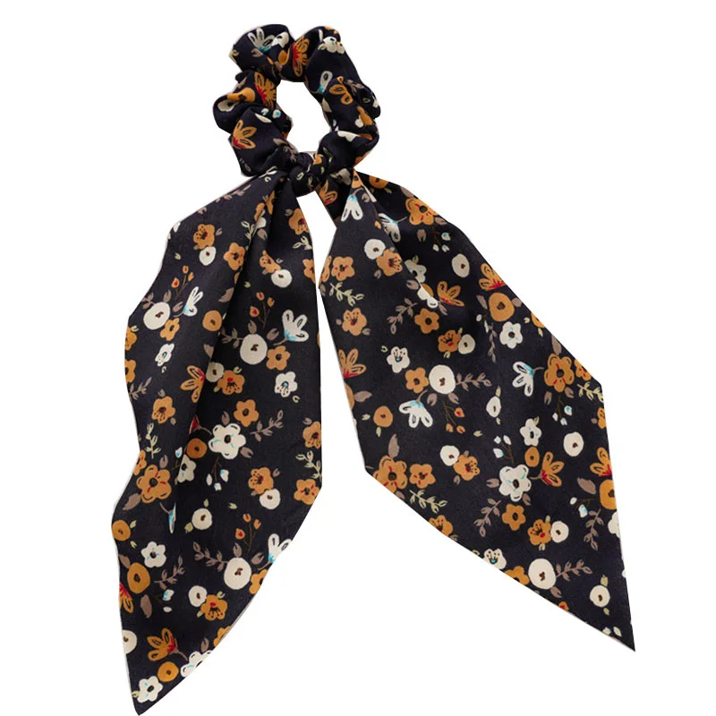 Бесплатная доставка, модные нарядные Сатиновые шелковые резинки для волос Цветочный принт Scrunchies однотонная лента для волос для Женский хвостик шарф, женские аксессуары для волос