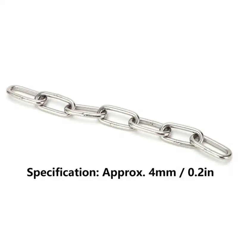 Характеристика: Спецификация: Тип изделия: подъемная цепьМатериал: нержавеющая сталь 304 #Спецификация: прибл. 4 мм/0,2 дюймаИспользование: подъемная, люстр, сушильная одежда и т. Д. Посылка: