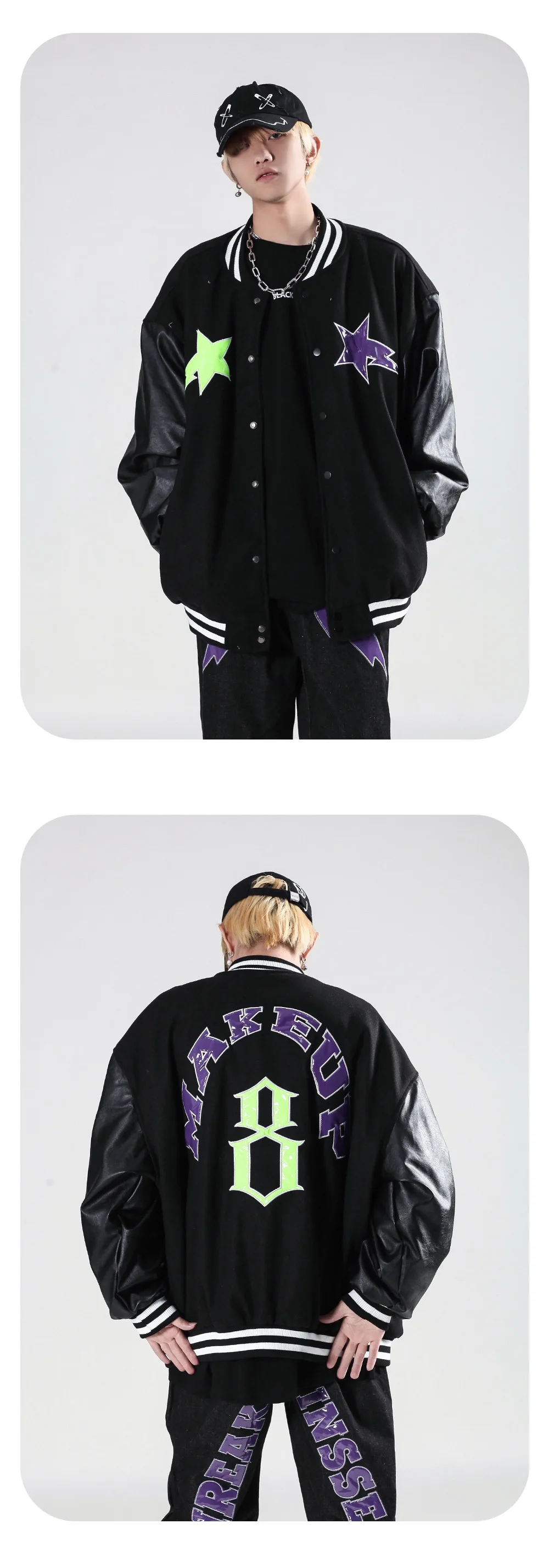 Бейсбольная куртка в стиле хип-хоп для мужчин и женщин, кожаная кур...