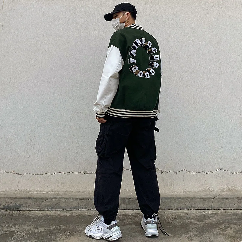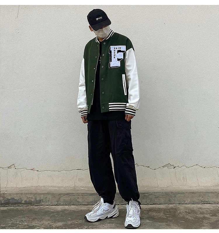 Мужская бейсбольная куртка, кожаная уличная куртка в стиле пэчворк ...