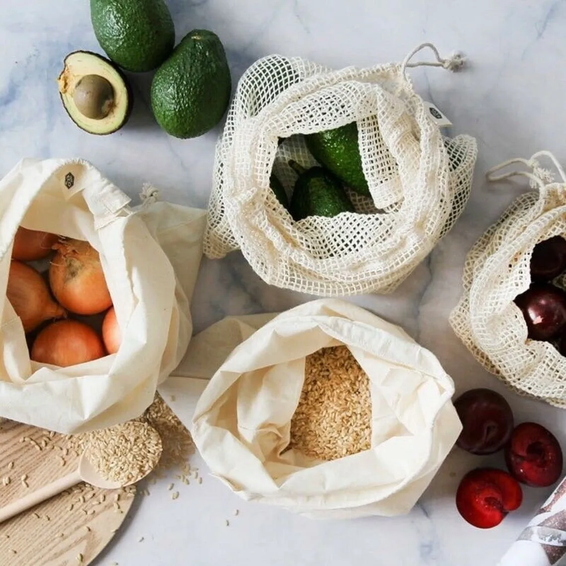 Мешки для овощей из хлопчатобумажной сетки, многоразовая сумка для овощей из хлопковой сетки, сумка для хранения на кухне, фруктовые овощи с Кулиской