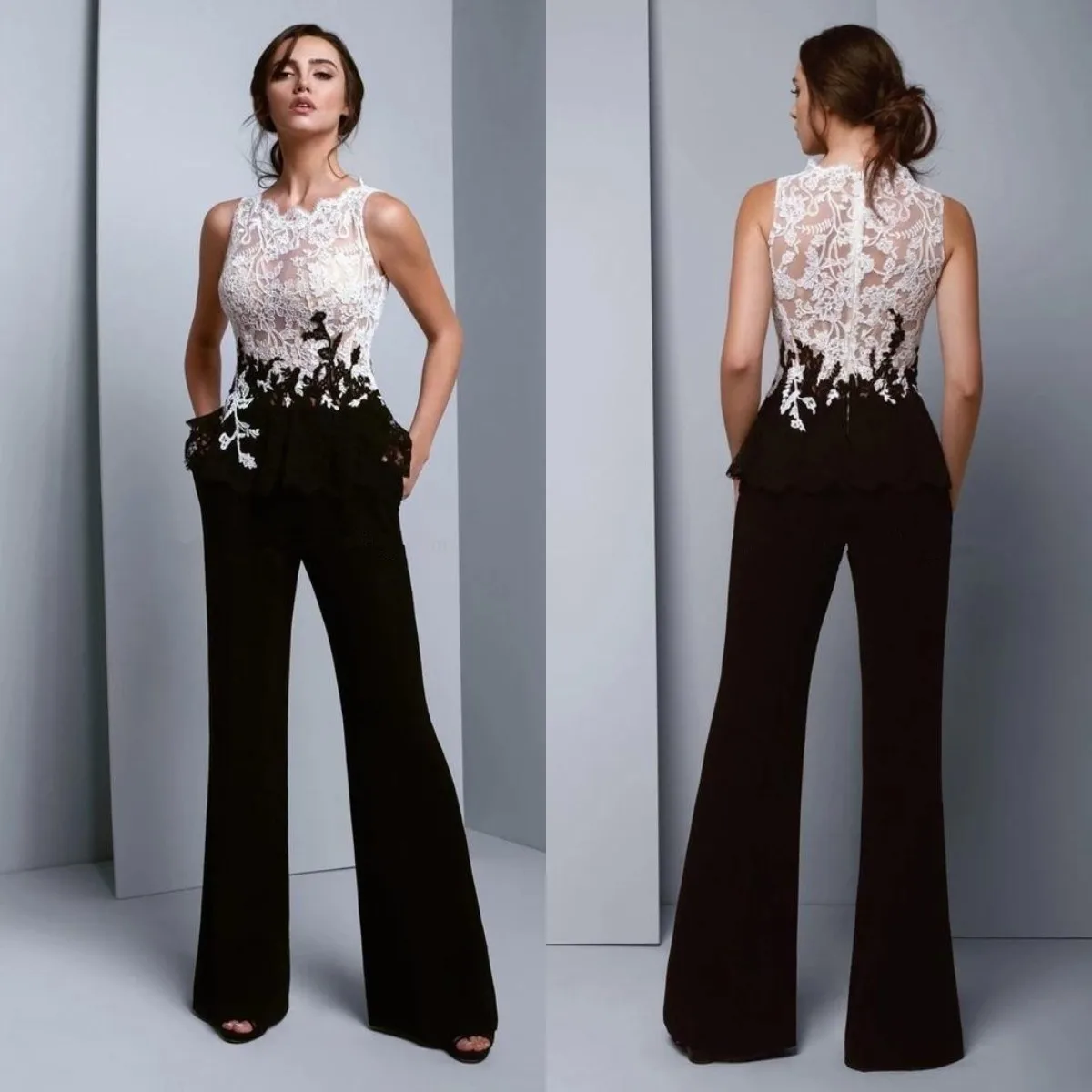 Комбинезоны 2021 для матери невесты Платья Круглый вырез брючные костюмы для женщин Свадебные платья белое черное кружево, аппликация матери жениха