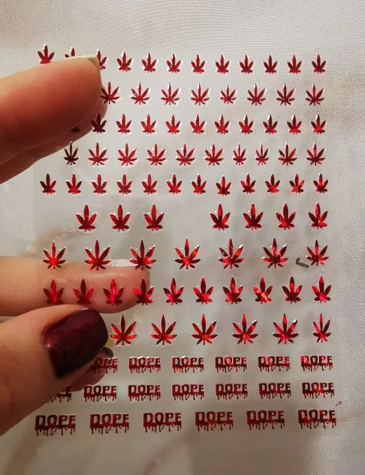 Кленовая листовая наклейка для дизайна ногтей, самоклеящаяся наклейка красного и зеленого цвета в горшке, травяной лист, украшение для ногтей, аксессуары для маникюра, инструмент для дизайна