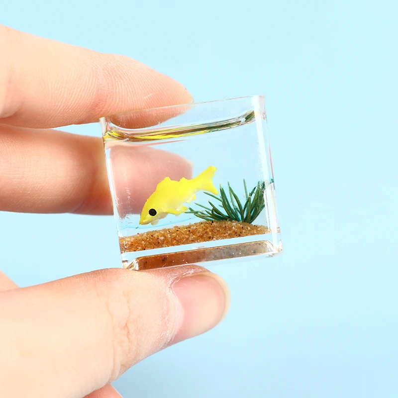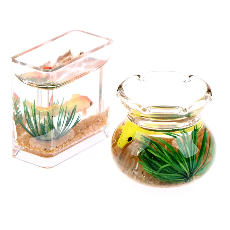 Кукольный домик миниатюра Стекло рыбы бачок чаша аквариум Кукольный дом домашний орнамент игрушки для кукольного домика наклейки Новинка!