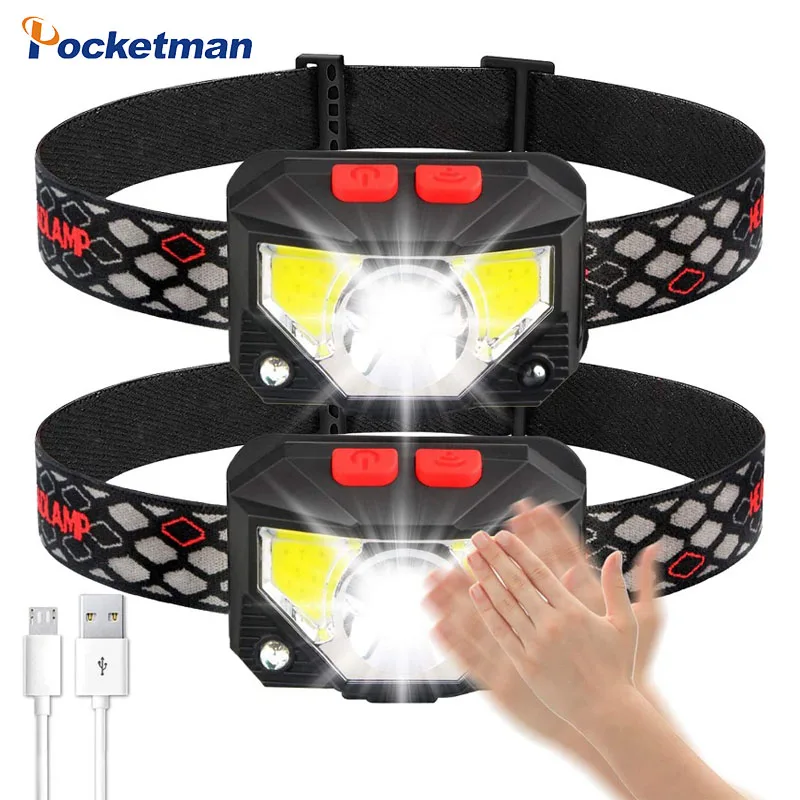 Светодиодный налобный фонарь с датчиком движения, Головной фонарь со светодиодный енным аккумулятором, индуктивсветильник, с портативной коробкой