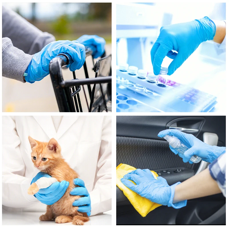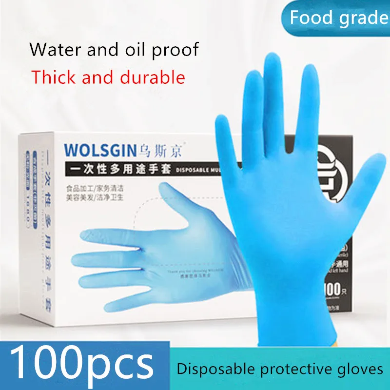 Одноразовые перчатки Dingqing, синтетические синие высокоэластичные защитные резиновые перчатки без пудры для пищевых продуктов для салонов красоты и татуировок