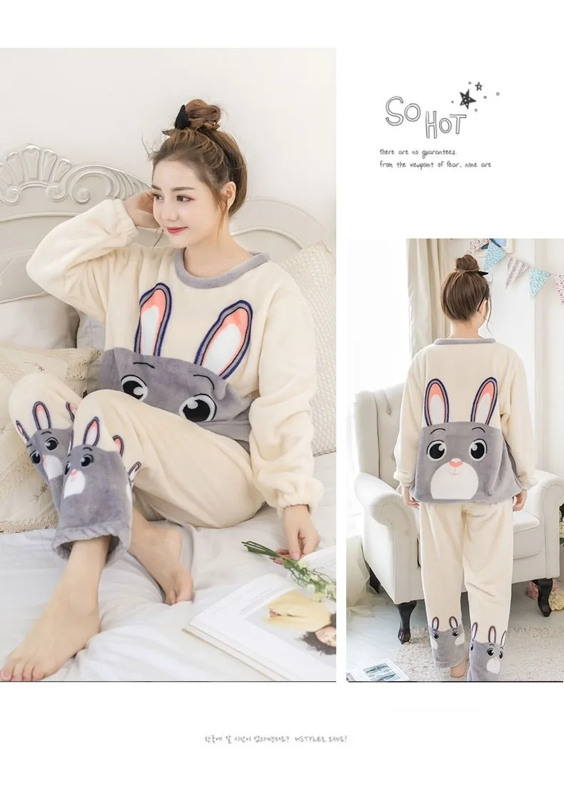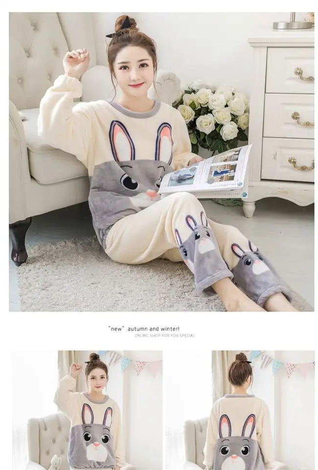 Новинка 2021, осенне-зимние теплые фланелевые женские пижамные комплекты, милые пижамы из плотного кораллового бархата с длинным рукавом, комплект из тонкой фланелевой пижамы