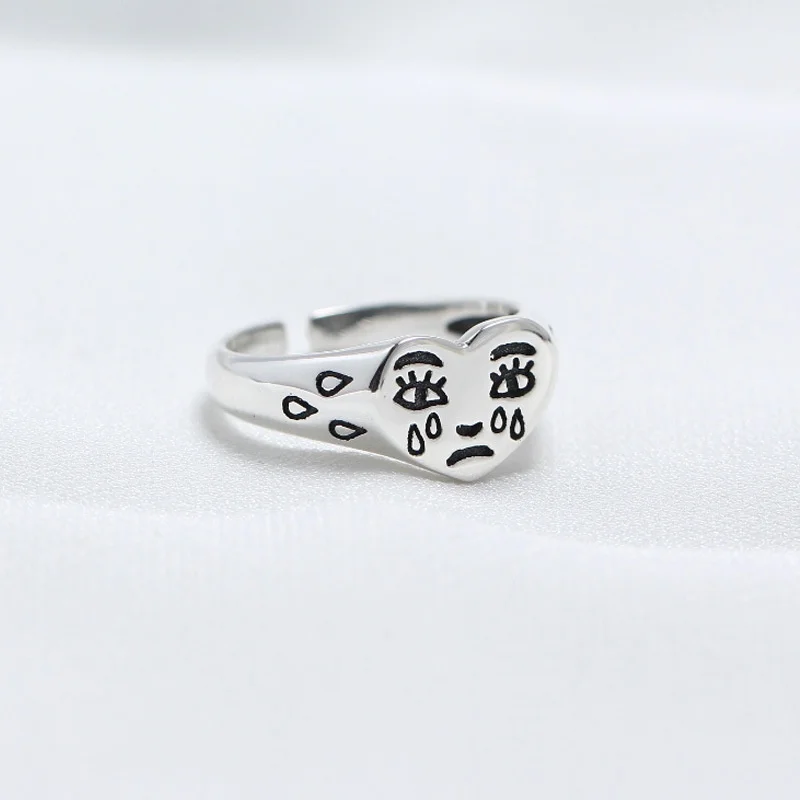 Модное плачущее любящее женское кольцо серебряное меланхолическое темное открытое регулируемое высокое качество...