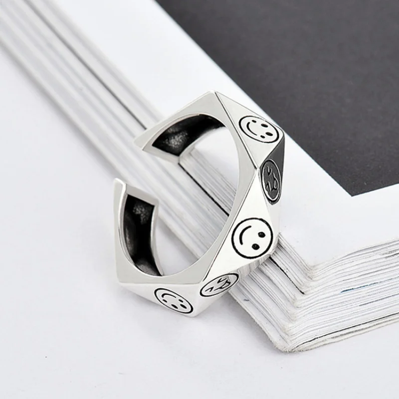 Винтажное античное серебряное Открытое кольцо с веселой улыбкой для женщин в стиле панк хип-хоп Adjustabl...