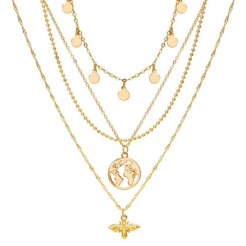 Женская многослойная цепочка на шею, многослойное ожерелье золотого...