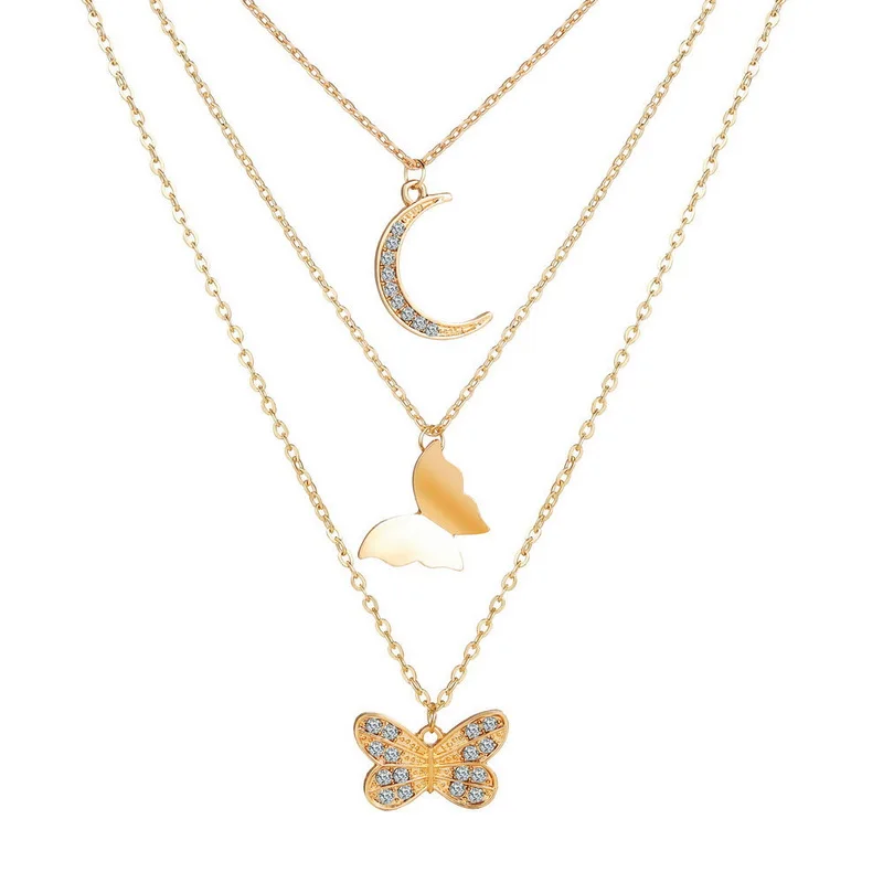 VKME винтажное многослойное бабочка подвески цепочка ожерелье для ж...