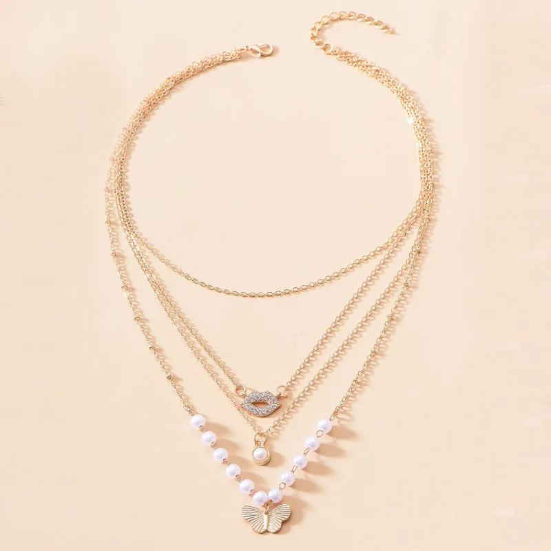 Многослойное жемчужное ожерелье с бабочкой для женщин, модное ожере...