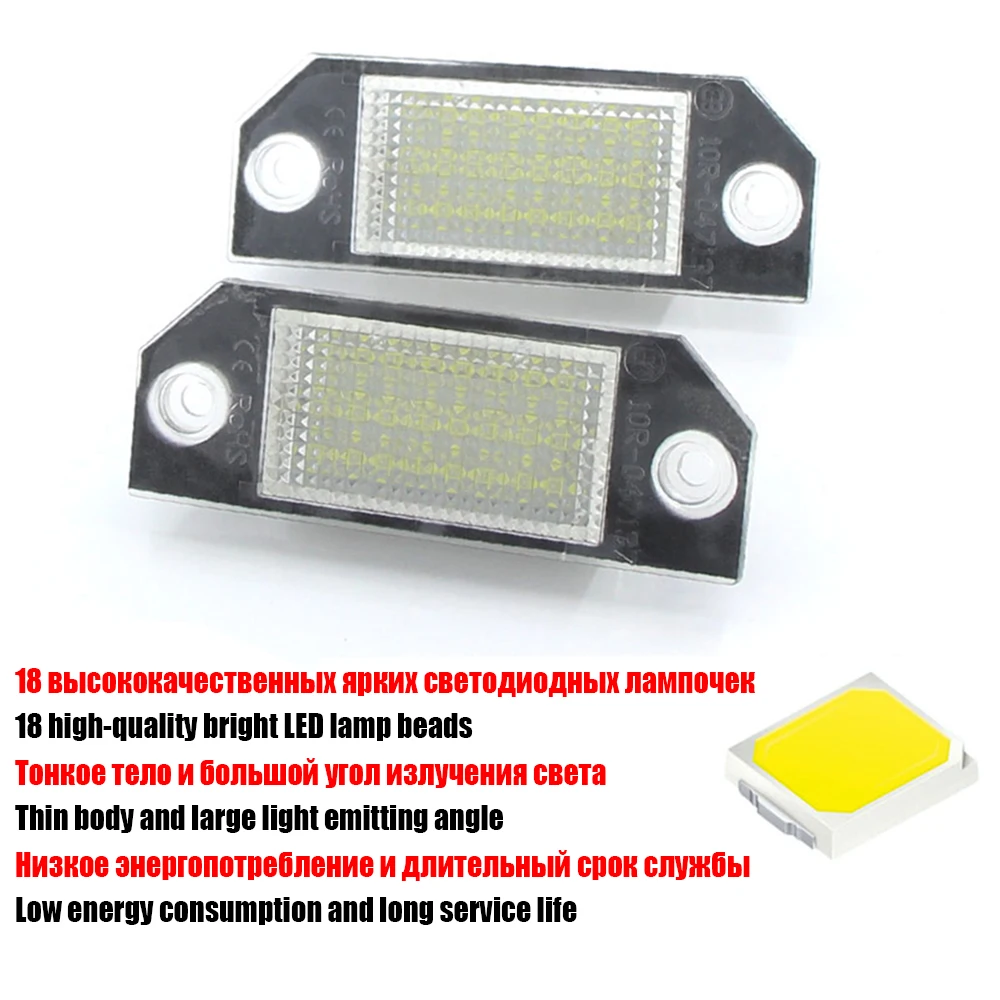 Для Ford:C-MAX 2003-2010Focus 2 2003-2008Цвет: белыйРабочее напряжение: 12 ВУгол луча: 180 градусов для идеального освещения номерного знакаПростая установка путем замены старых лампЦвет света-чистый белый 6000KСрок службы: 50000 часов