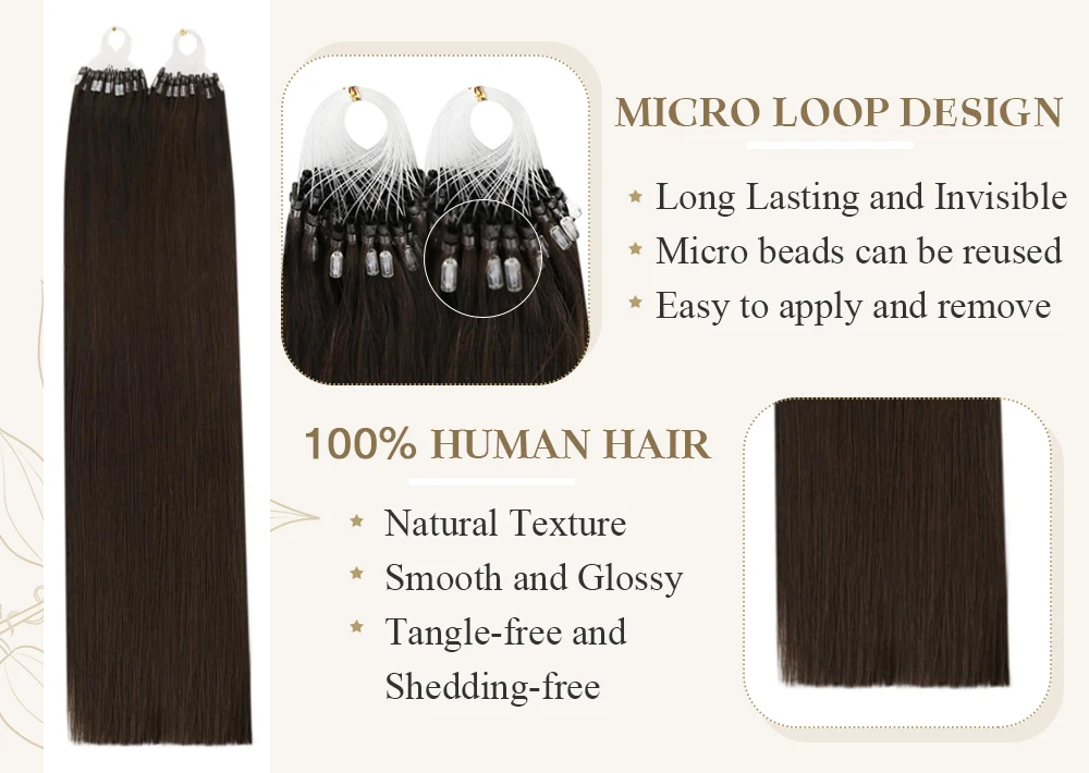 Накладные волосы на микро-кольцах не нужно нагревать или использовать клеи, и при правильной установке, нет повреждений вашим собственным волосам.