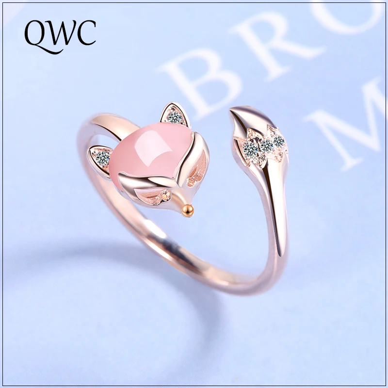 Новинка модное Открытое кольцо QWC на палец с изображением животного лисы регулируемое для женщин студенток милое прекрасное корейское ювелирное изделие с кристаллами цирконием подарок