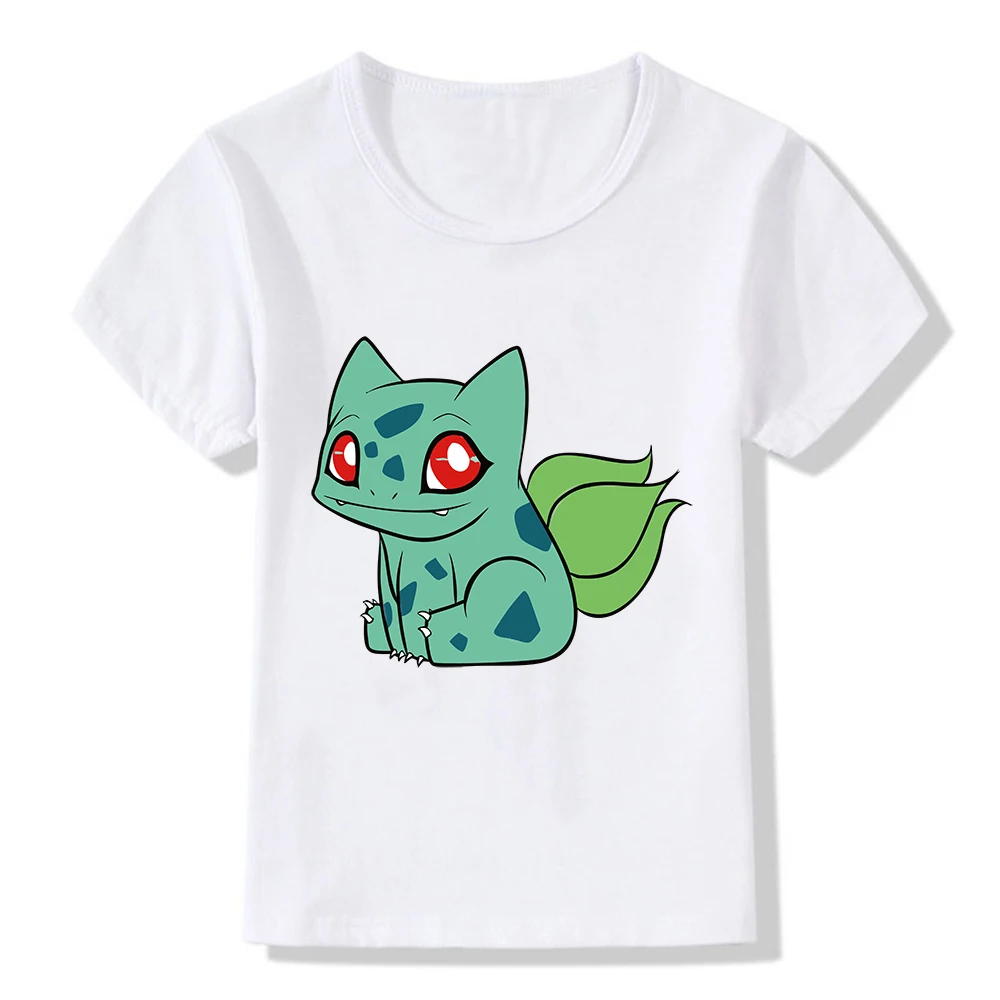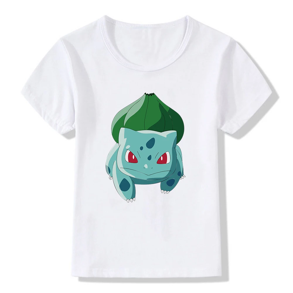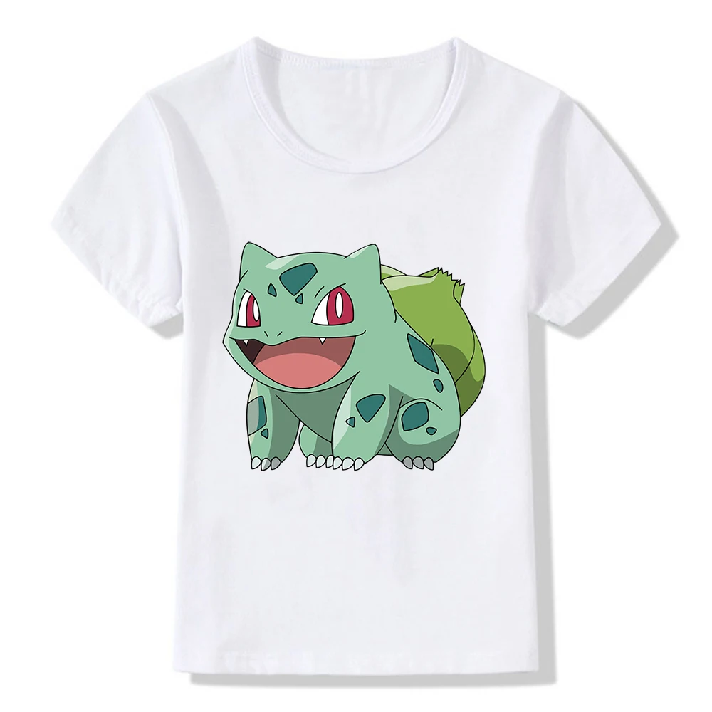Покемон Бульбазавр; Изящная футболка для Для детей, на лето для мальчиков и девочек, забавные аниме футболка с принтом Pocket Monster для топы, одежда для детей