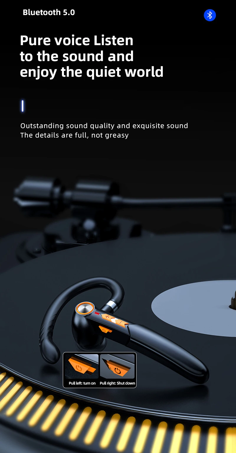 5. Эргономичный дизайн: ушные крючки Bluetooth вращаются на 280 °, подходят для ношения на левом и правом ушах.
