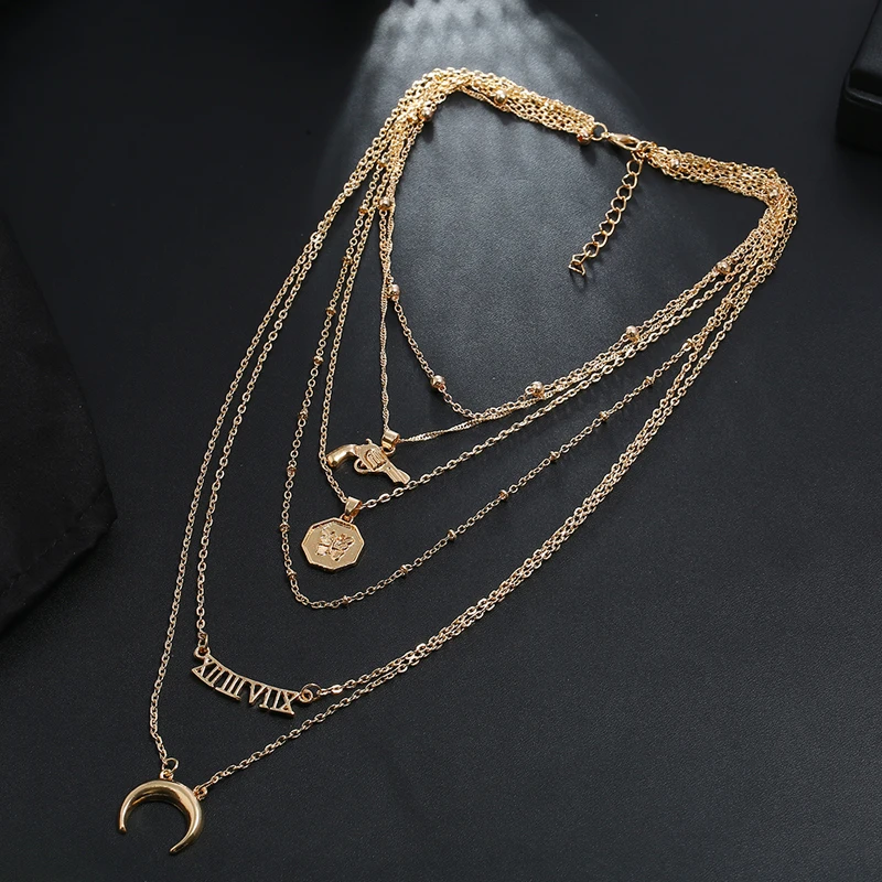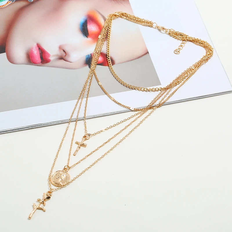 Золотое многослойное короткое ожерелье женское на шею металлическая...