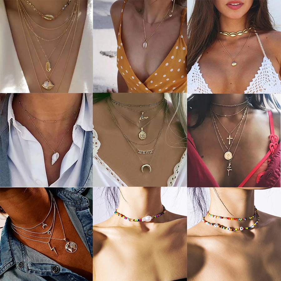 Многослойное ожерелье kissжена для женщин, модное колье из ракушек ...