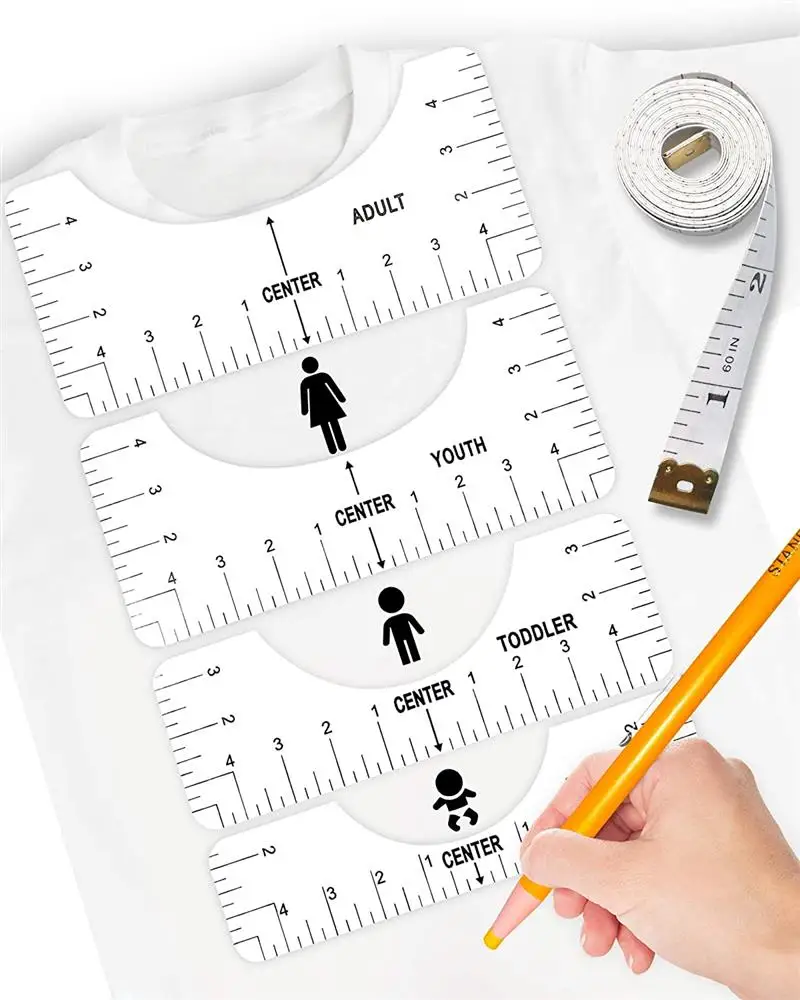 Линейка для выравнивания футболок, 4 шт., для направляющих футболок, модные линейки с таблицей размеров для взрослых, молодежи, малышей