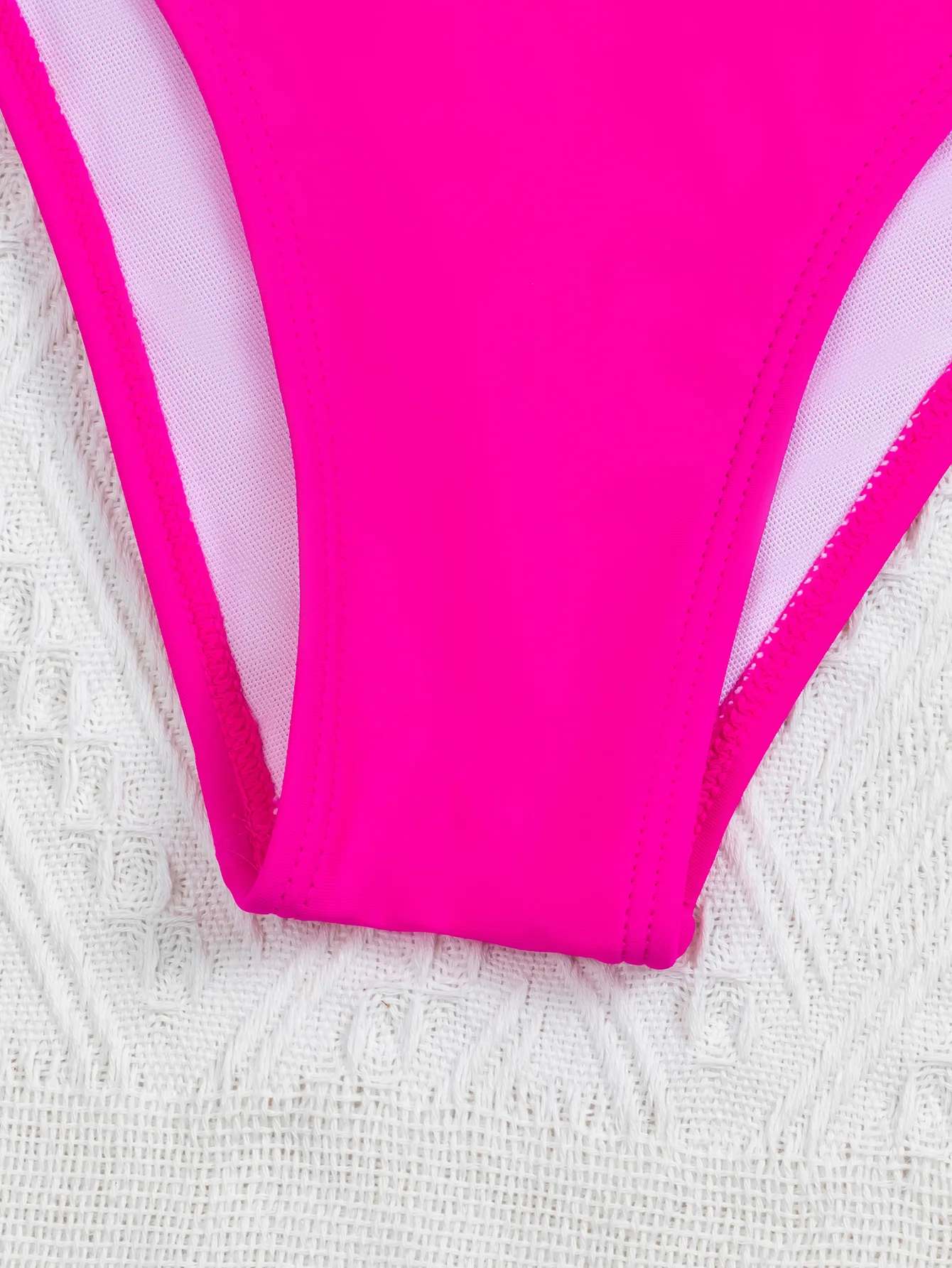 Сплошной цвет бикини 2021 Бандо купальник женский комплект из 2 предметов Спортивный Купальный костюм с открытыми плечами сексуальный купальник женский летний