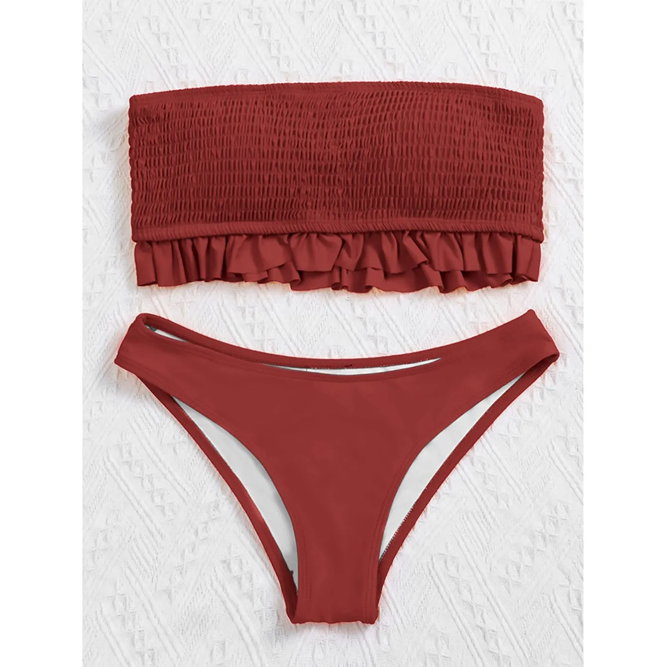 Сексуальное бикини с оборками 2022, купальник-бандо, женский купаль...