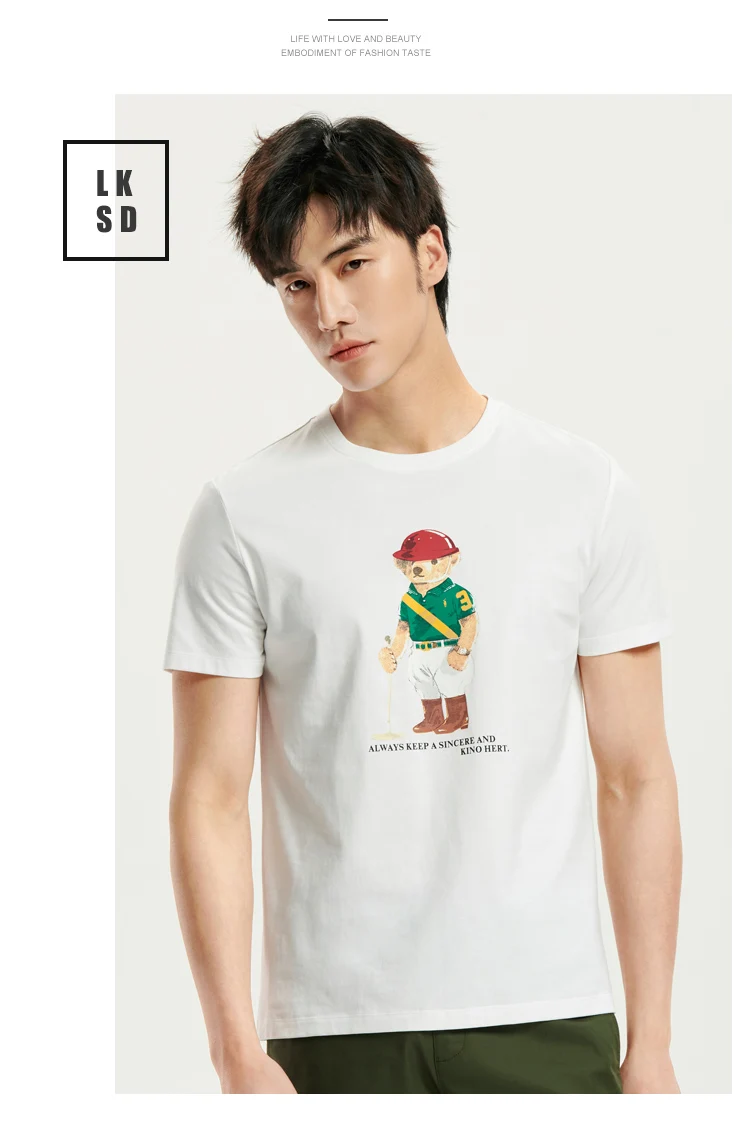 Футболка LKSD U060510154 мужская оверсайз, модная повседневная рубашка с круглым вырезом и принтом животных, топ свободного покроя с коротким рукавом, 100% хлопок, на лето