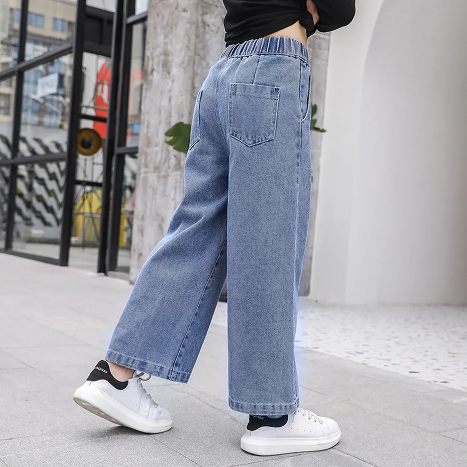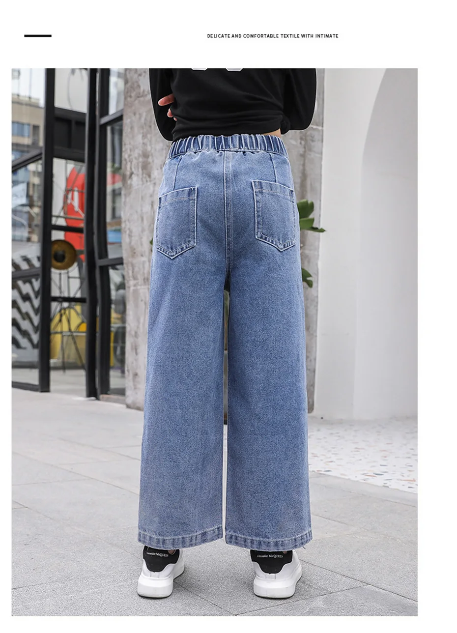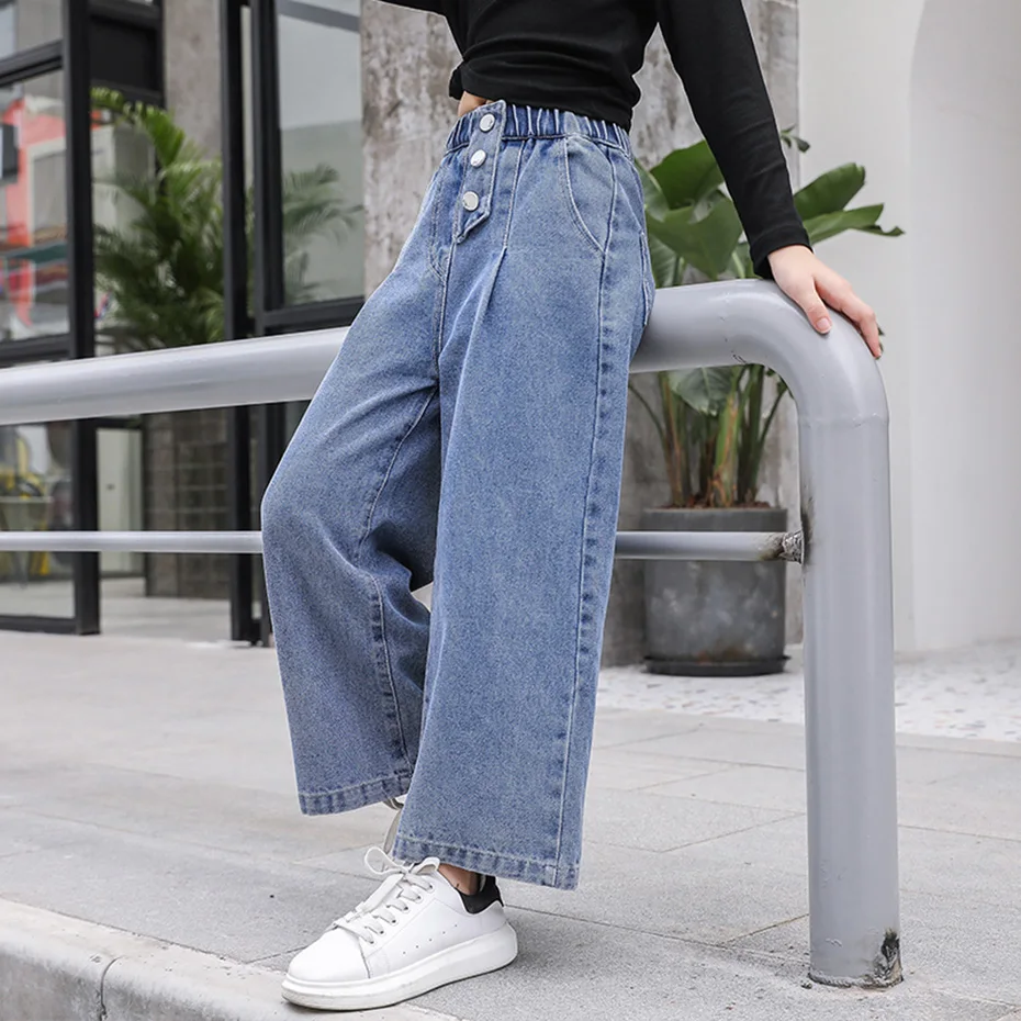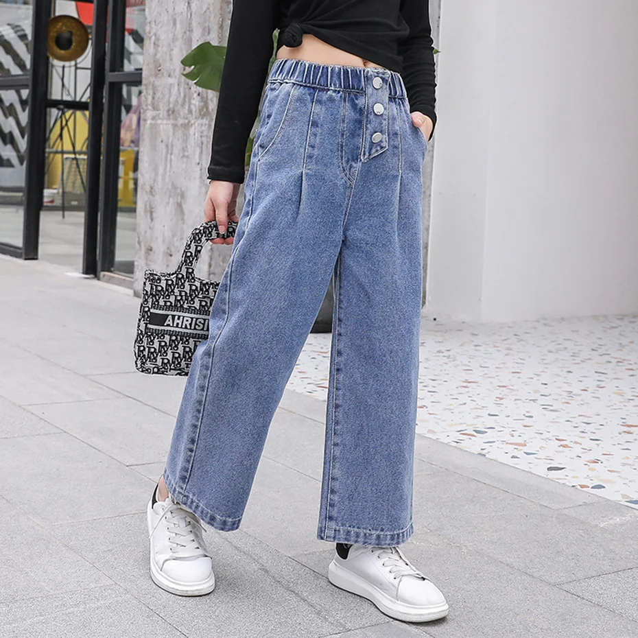 Джинсы для девочек, осень 2021, свободные прямые брюки с широкими ш...