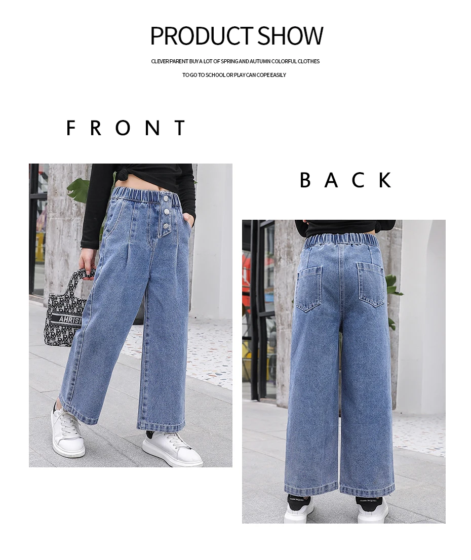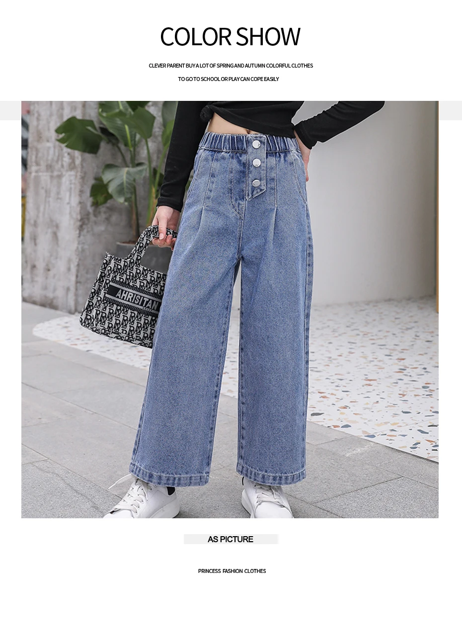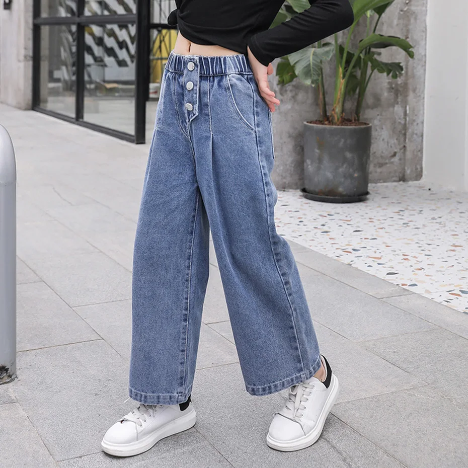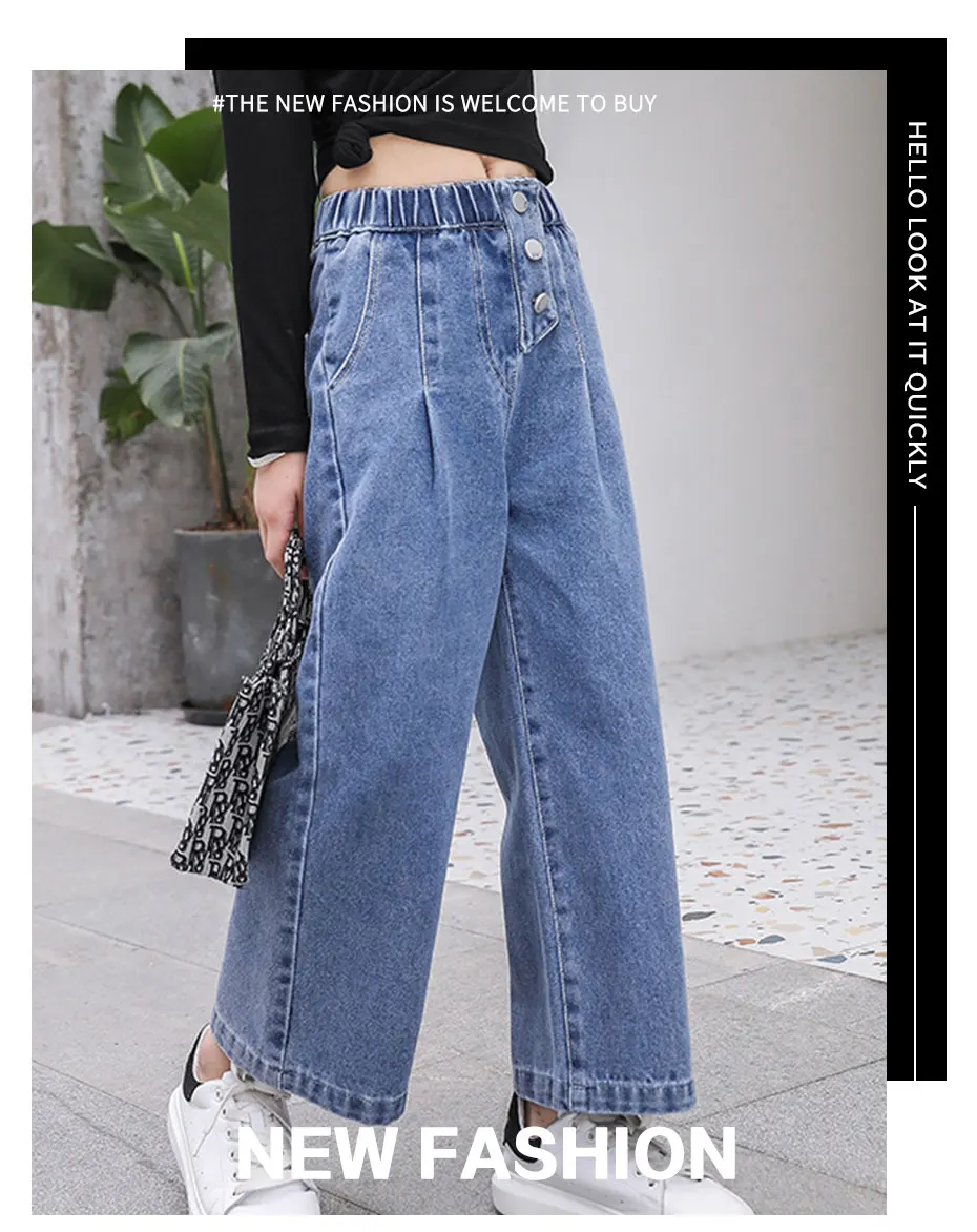 Джинсы для девочек, осень 2021, свободные прямые брюки с широкими ш...