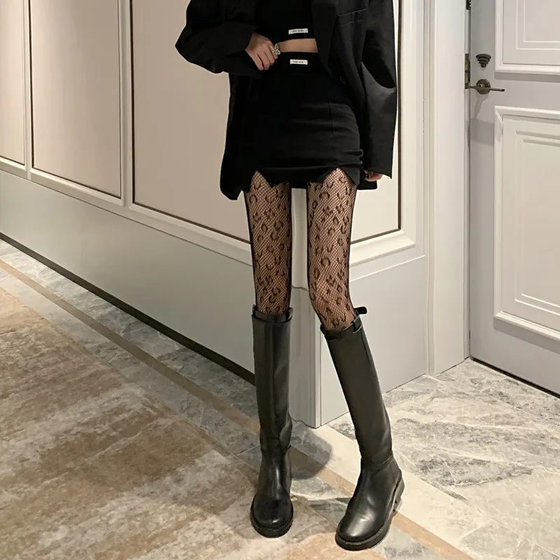 Сексуальные сетчатые ажурные колготки, чулки для женщин, леопардовые черные нейлоновые чулки, колготки в стиле ретро, цветочные Чулочные изделия