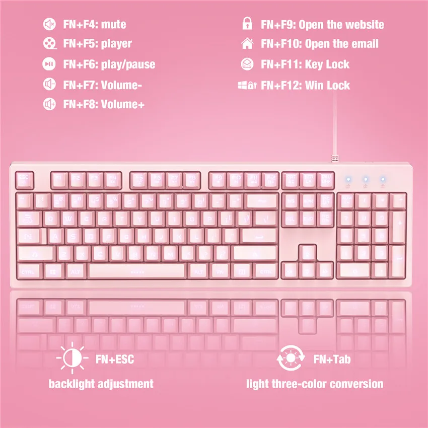Новинка, розовая клавиатура, мышь, набор, Проводная Игра, ноутбук, настольный компьютер, подходит для ввода, Офисная клавиатура, мышь, в качестве подарка для девочек