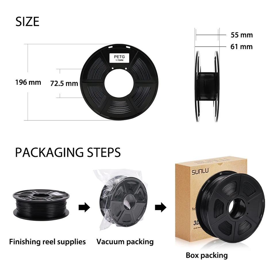 Нить SUNLU PETG для 3D-принтера, 1,75 мм 0,02 мм, хорошая прочность, 1 кг со шпулей, расходные материалы, запасы во Франции