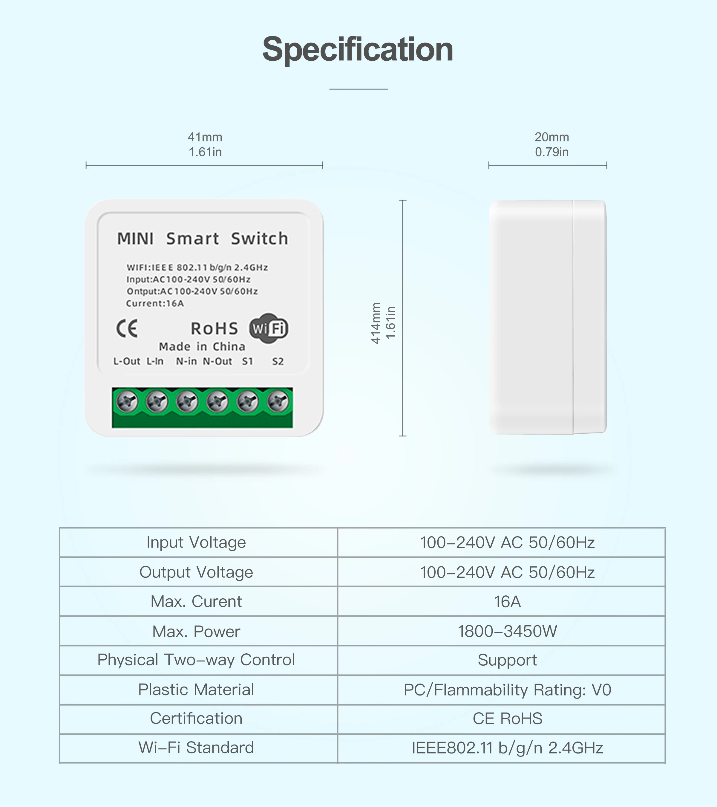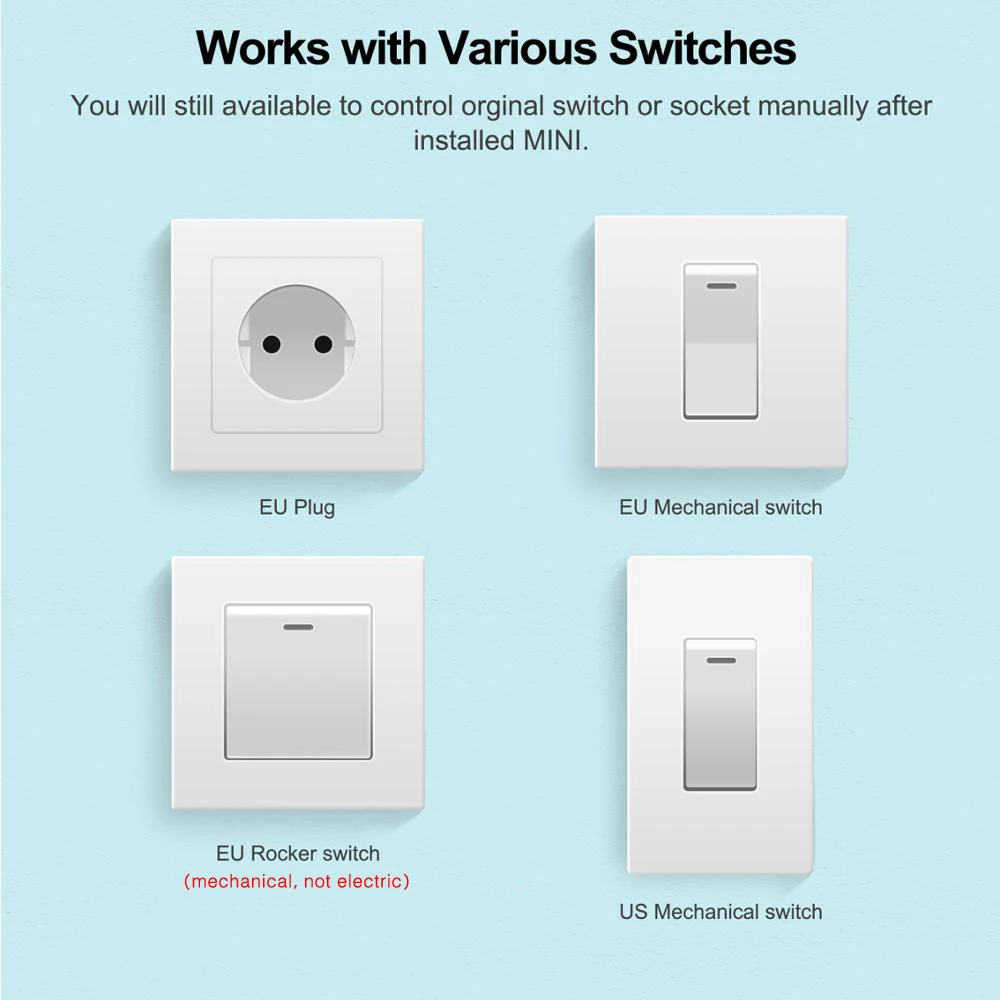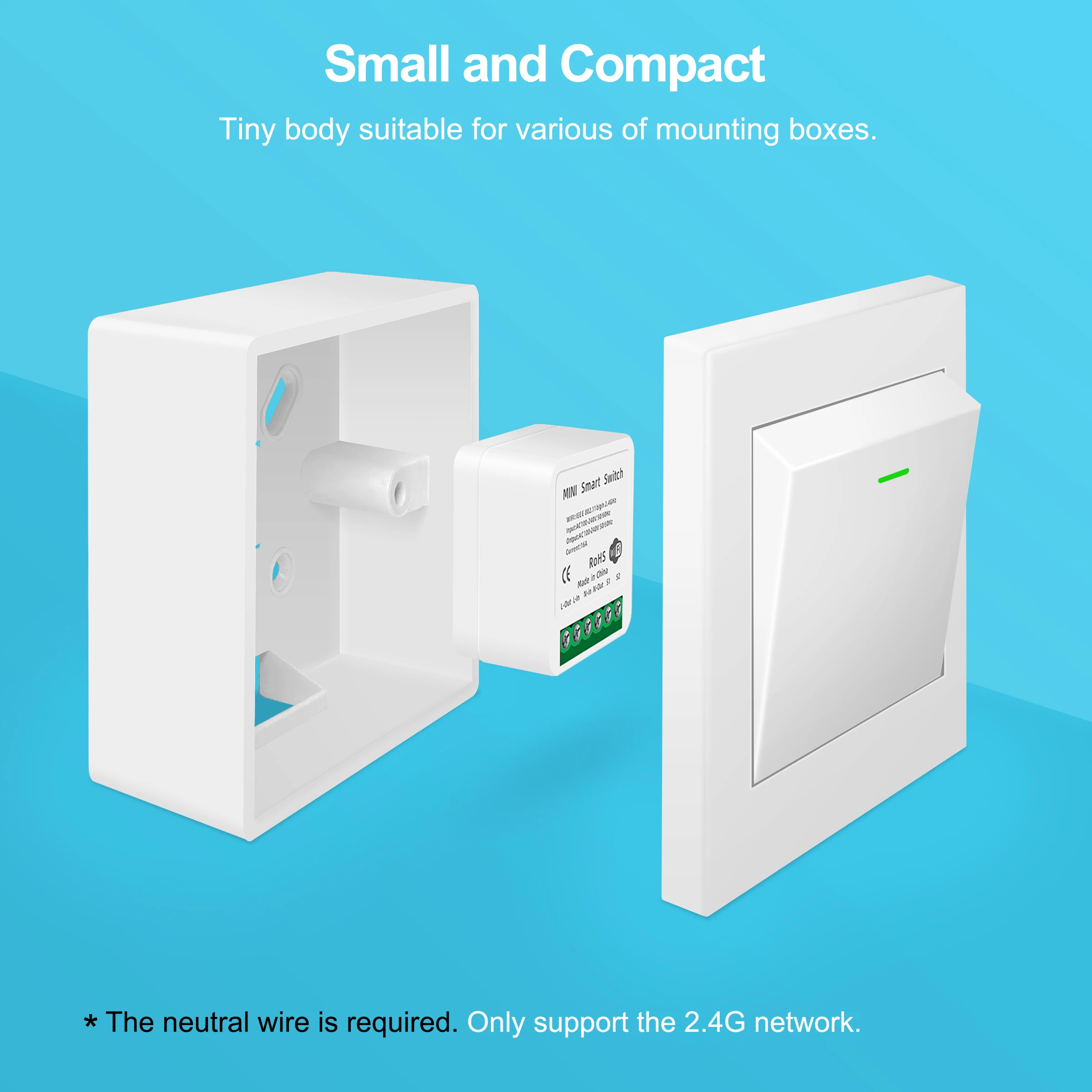 40*40*21 мм мини-корпус, работает с большинством ящиков, выключателей и настенных розеток, не нужно менять оригинальные переключатели.