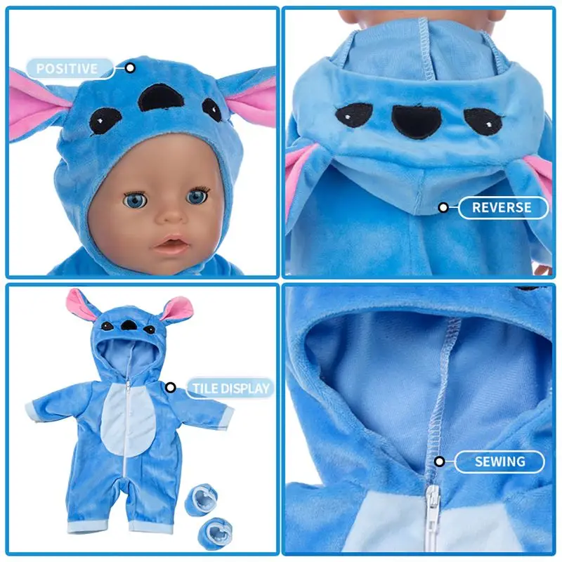 Кукольная одежда для новорожденных, подходит для кукол 17 дюймов 43 см, аксессуары для кукол, синий костюм + обувь в подарок ребенку