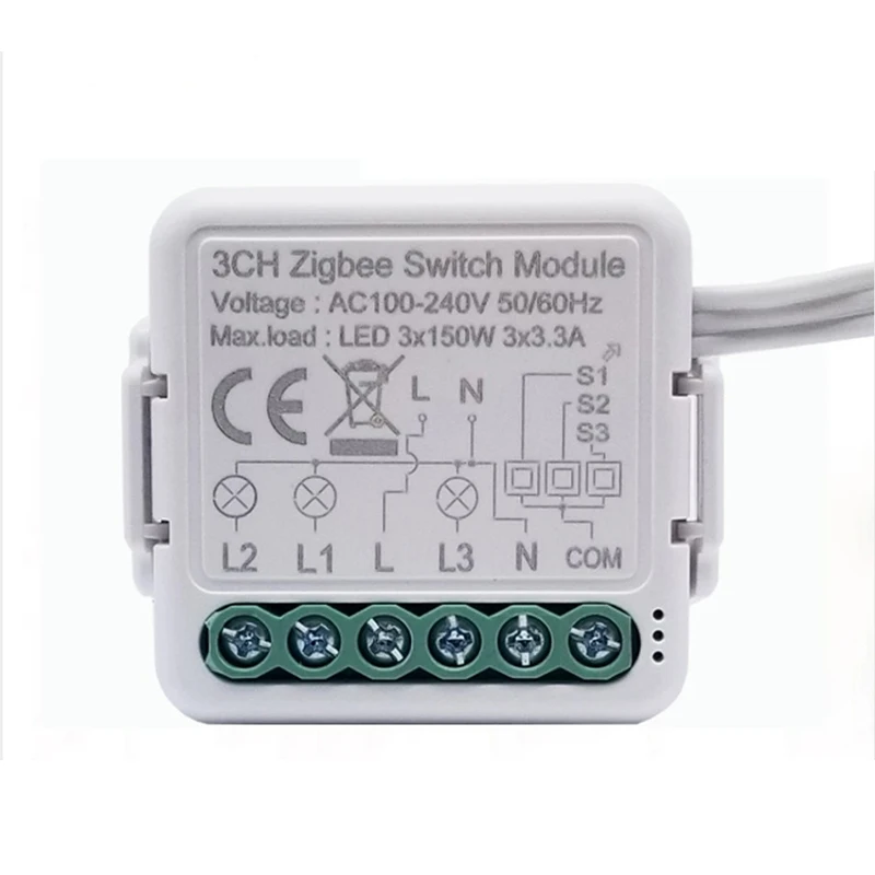 Tuya Zigbee Беспроводной интеллектуальный коммутационный модуль Noс нейтральным ЕС 220V 3 Way Беспроводной светильник реле Zigbee Alexa Google Home