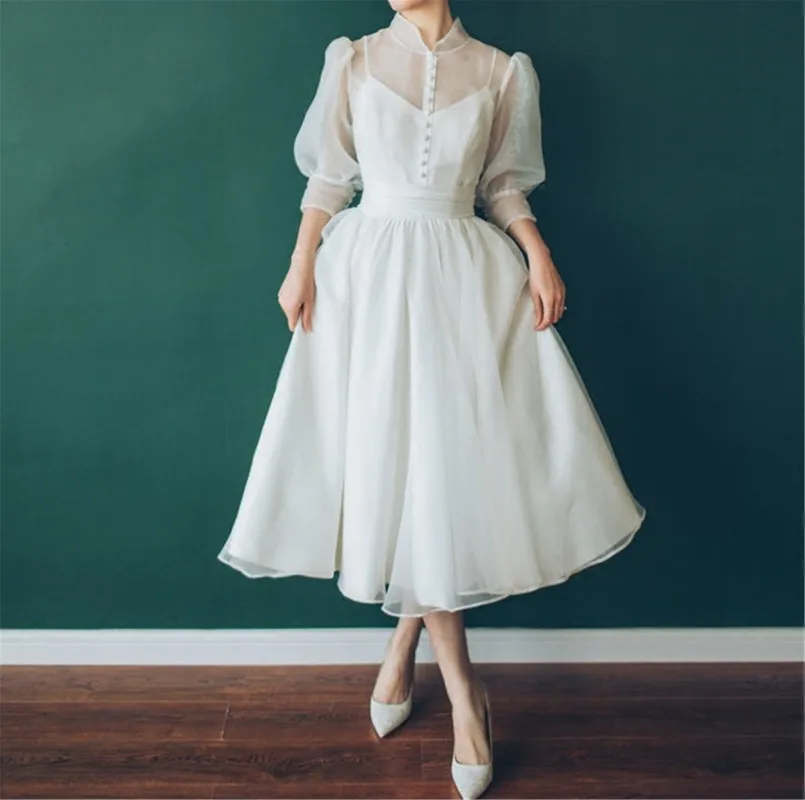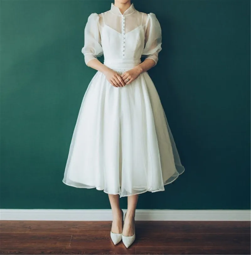 Короткое свадебное платье 2021 пляж, с рукавом в три четверти рукав...
