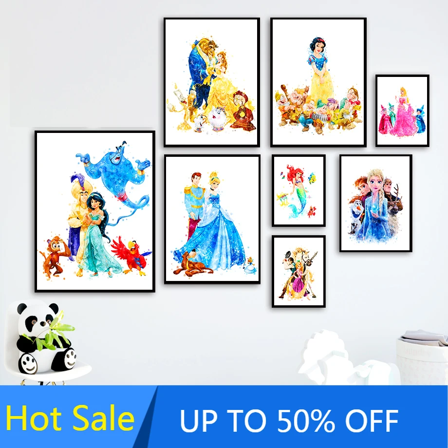 Настенная картина из мультфильмов Disney, постеры и принты принцессы в скандинавском стиле, украшение для дома, декор для гостиной icon star icon star icon star icon star icon star