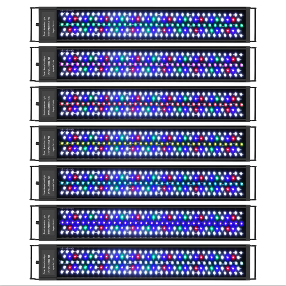 Светильник высокого качества: светильник в виде рыбного бака полностью оптически, с петлей, красный, синий, зеленый, белый, желтый, оранжевый и темно-фиолетовый (знак режима начала цветового цикла). Светильник мягкий, индекс цветопередачи близок к естественному светильник, до 89%, защищает глаза и рыбу, чтобы отказаться от дискомфорта, вызванного стробоскопическим для рыб и зрителей. Используя высококачественный 2835 + 5050 модель лампы, бусины, длительный срок службы, по крайней мере, 50000 часов. И есть 10 видов яркости светильник можно регулировать.