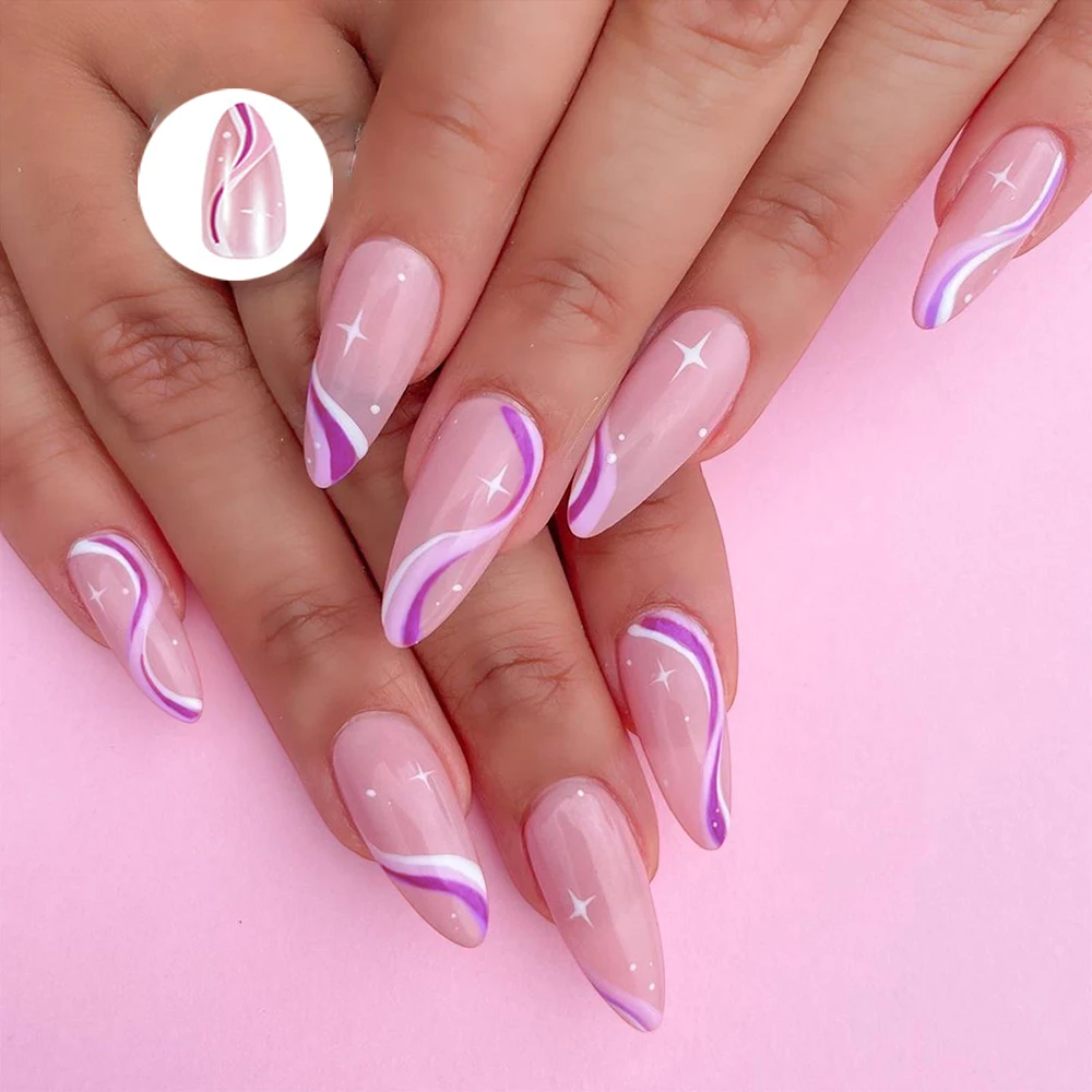 24 шт миндаля форма накладные ногти с цветной волной кривой дизайн ...