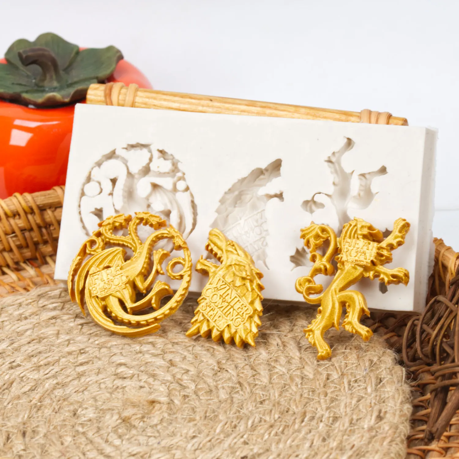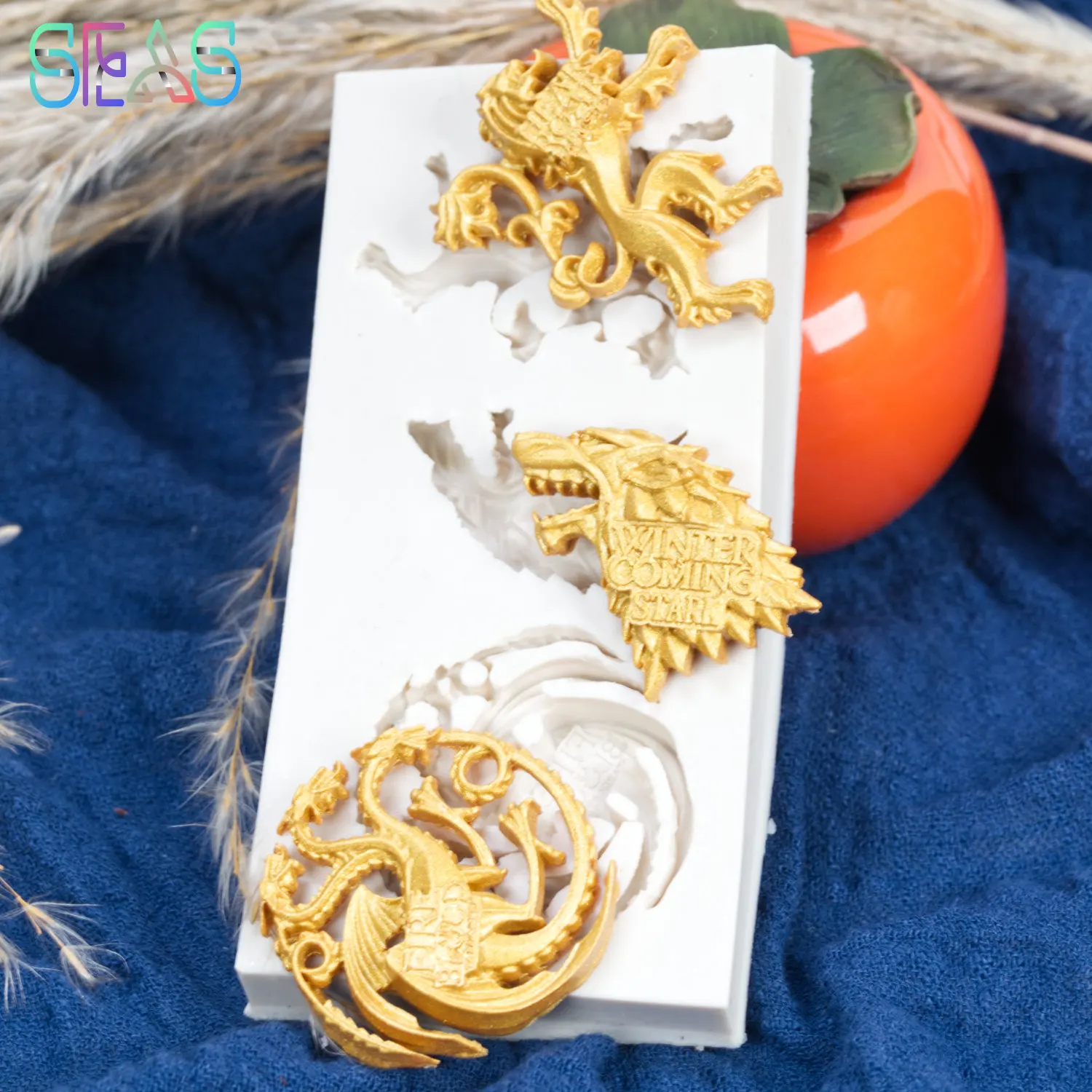 Эмблема клана, Лев, волк, дракон, силиконовая форма для помадки, инструменты для украшения тортов, элементы для телевизора, кухонный гаджет