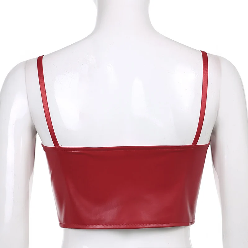 Женский укороченный топ на шнуровке, из искусственной кожи, в готич...