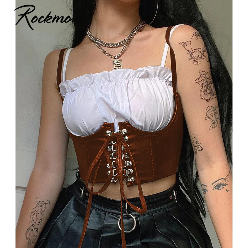 Классический Топ Rockmore из искусственной кожи в готическом стиле, винтажный укороченный топ, жилет в стиле панк, коричневый бандажный топ для девочек, Mujer