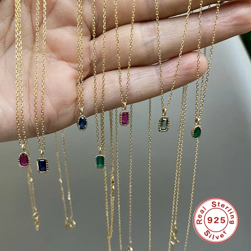 Автоклав ожерелье для женщин 925 стерлингового серебра кулон ожерелье прямоугольник циркон браслеты с подвесками ювелирные изделия 2021 тренд колье W5