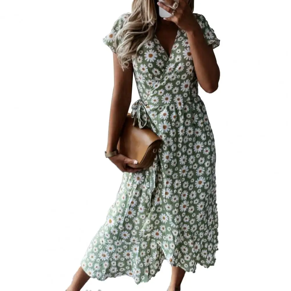 Платье с v-образным вырезом, с широким подолом женский Для женщин Винтаж с цветочной печатью платье для пляжа
