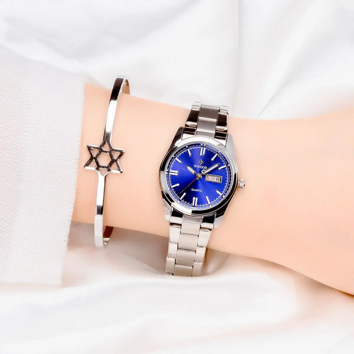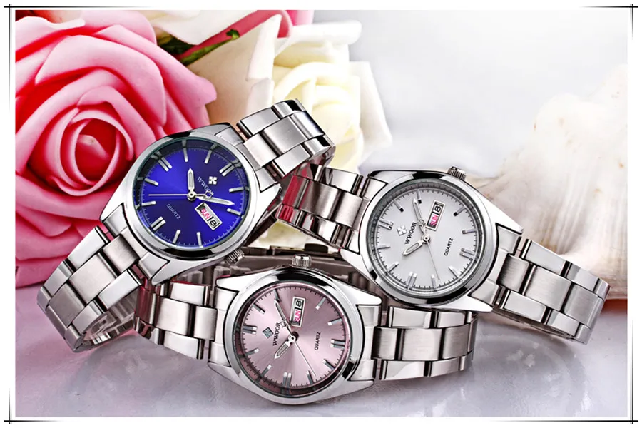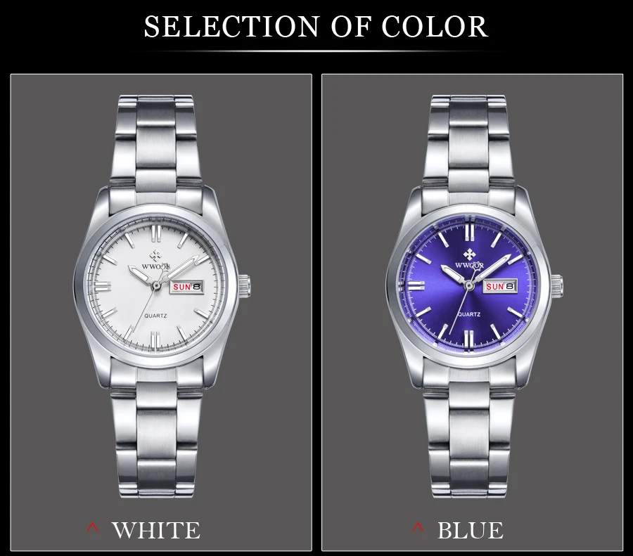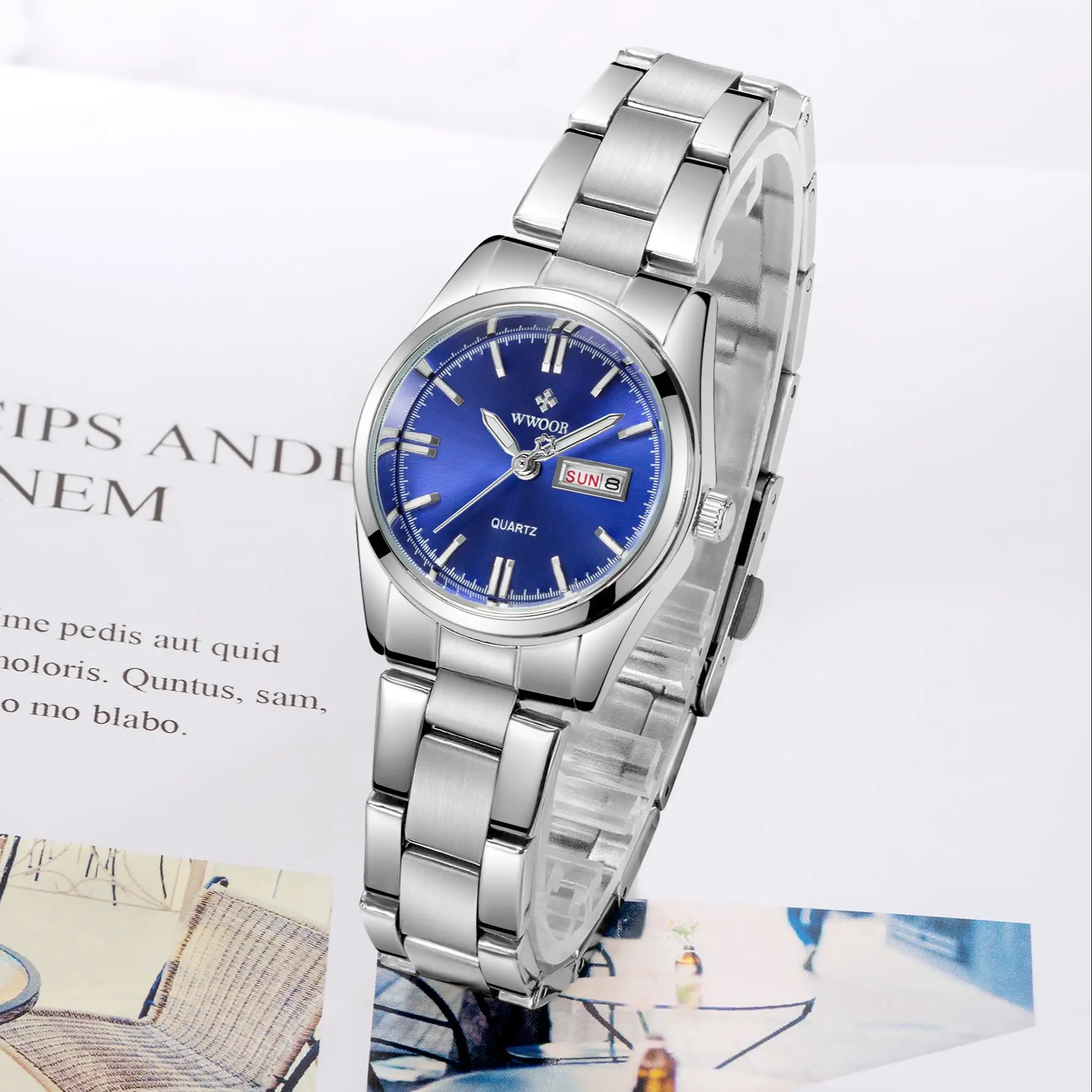 Часы WWOOR женские кварцевые с браслетом из нержавеющей стали
