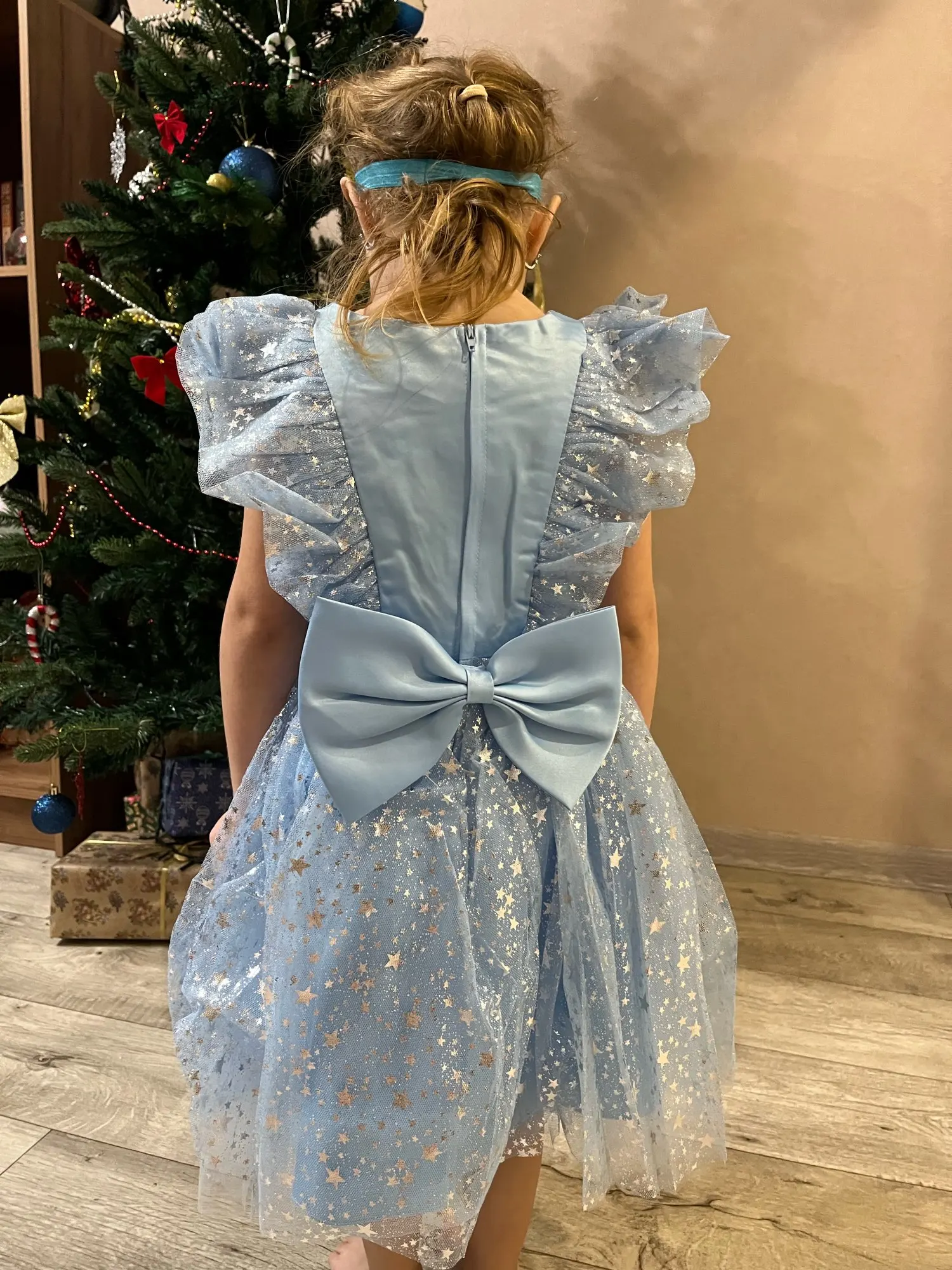 Детское блестящее платье-пачка с бантом, в виде звездного неба