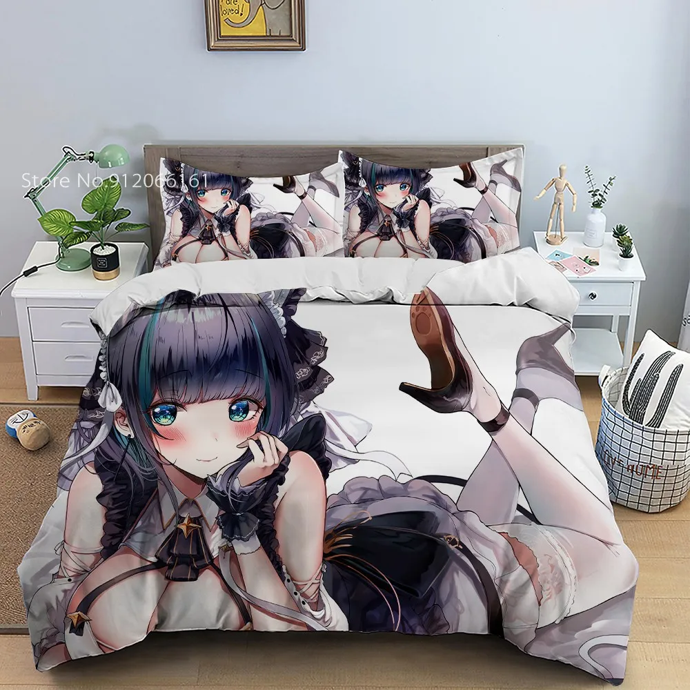Комплект постельного белья с рисунком аниме, 2/3 шт., пододеяльник для спальни, постельного белья, домашний текстиль, Комплект постельного белья (без простыней)