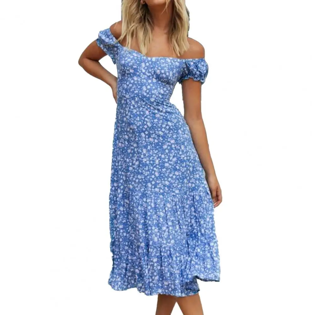 Лидер продаж с открытыми плечами с принтом на шнуровке тонкие летние миди платье-сарафан для пляжа